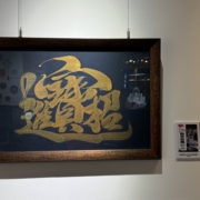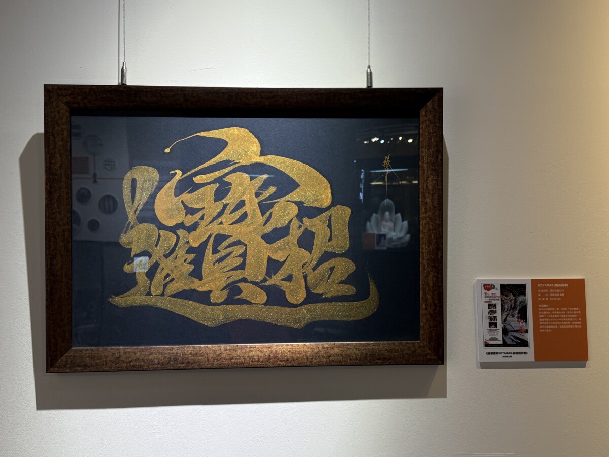這件作品最終選擇以深藍宣紙為底,並運用璀璨的金墨進行創作,在視覺上營造出一種既沉穩又華麗的對比感。這種配色不僅襯托出金墨的流動性,也凸顯了 SOYAMAX著名的那種豪邁且充滿生命力的線條,這種風格是他多年來在世界各地街頭揮毫、將汗水與墨水融合後的結晶。對曾山尚幸而言,書法不單是文字的書寫,更是一種與觀者「結緣」的過程;他在經歷過十八歲那場生死交關的病痛後,便抱持著「如同明天就要死去一般活著」的精神,將每一件作品視為與大眾分享喜悅的媒介。
