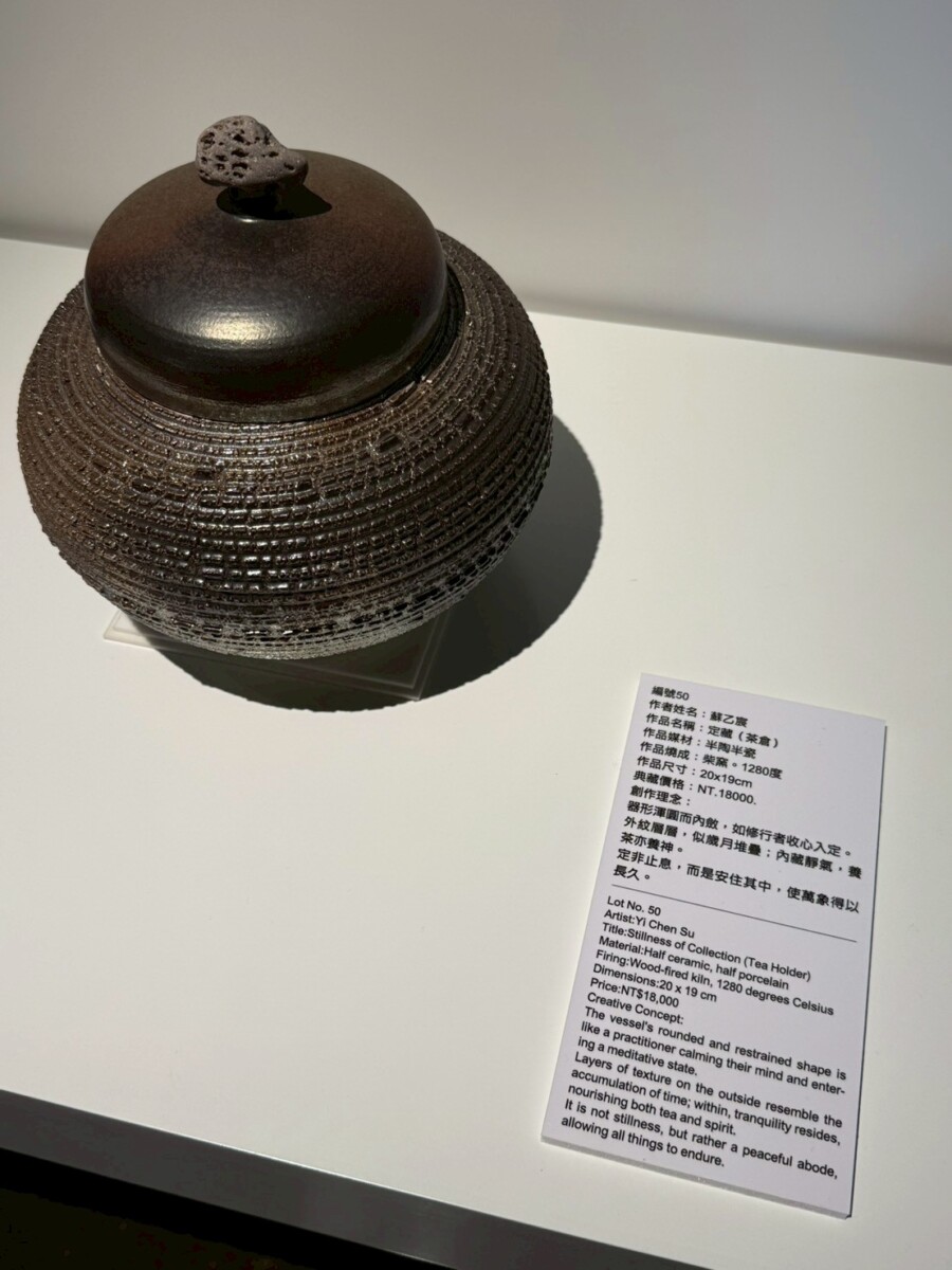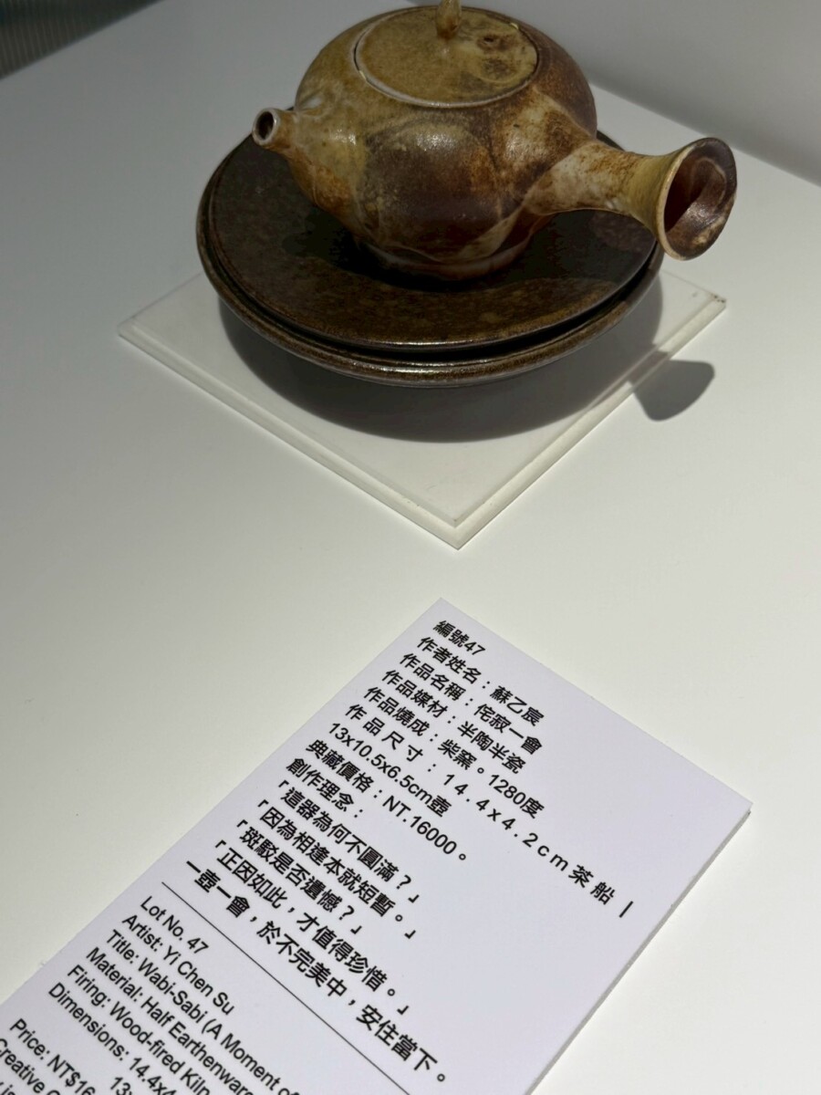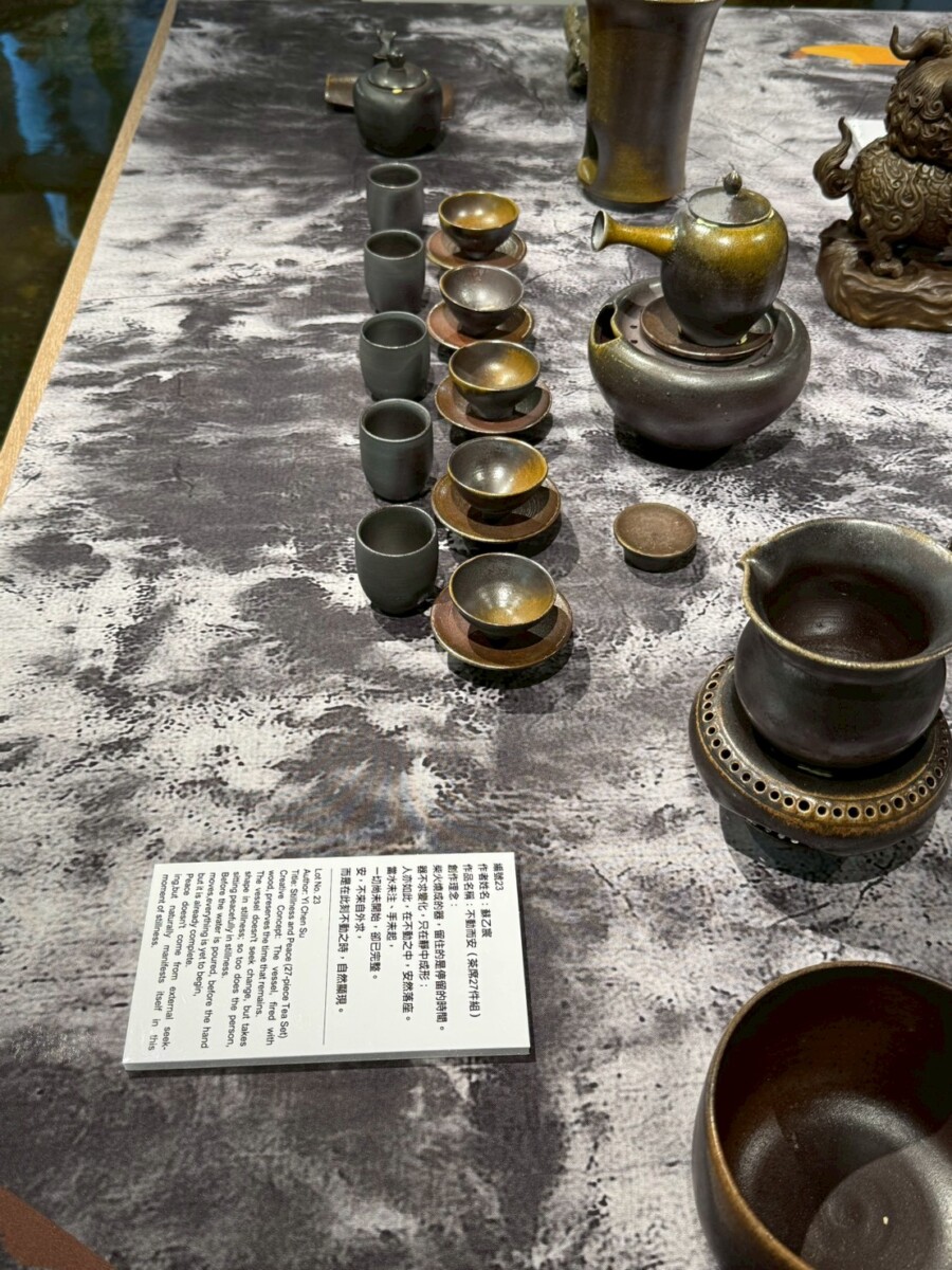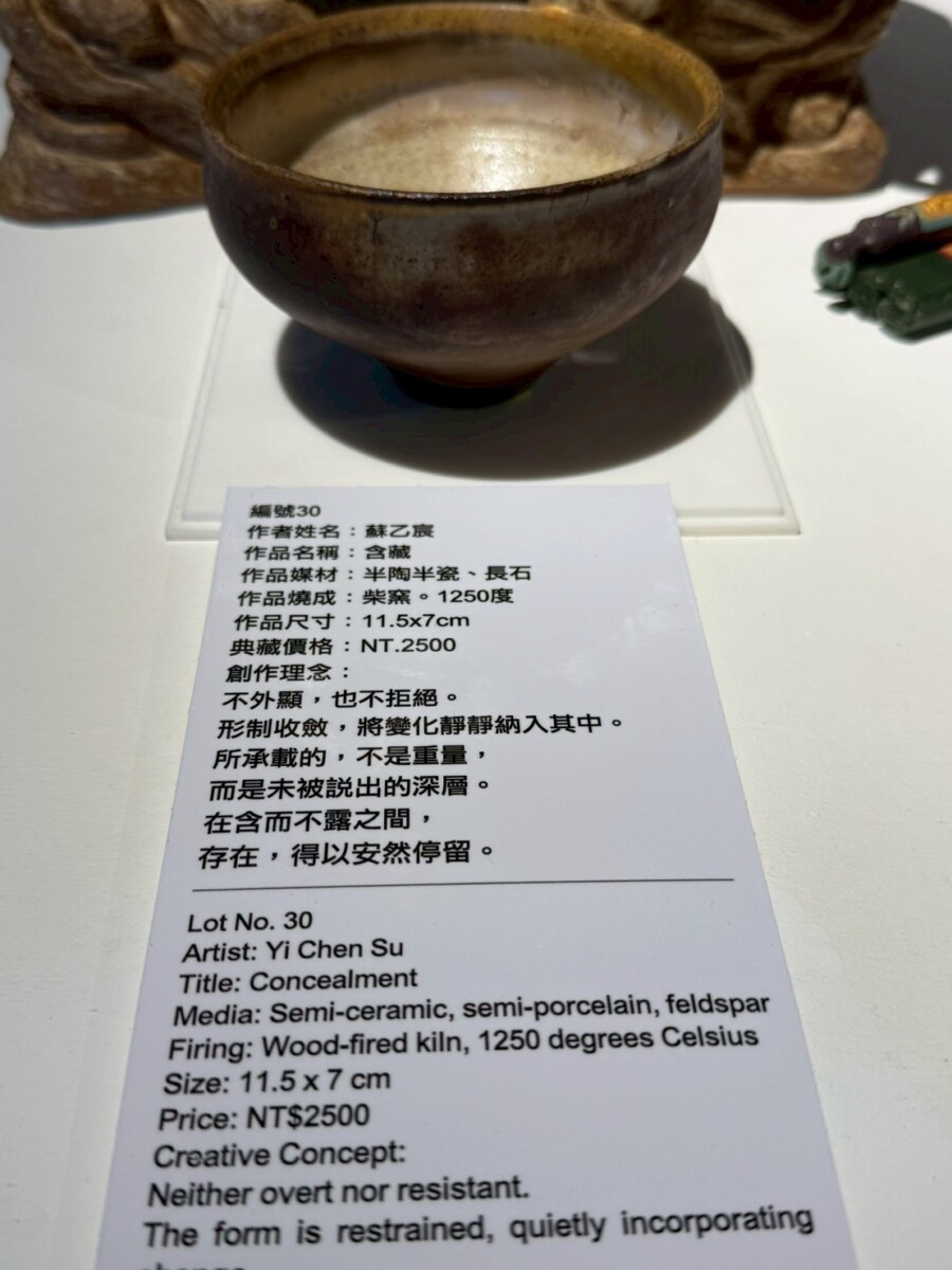 在《一盞一相》的創作對話裡,蘇乙宸的柴燒茶器與佛像木雕形成了靜與動、內觀與外觀的交織。佛像引導觀者停下腳步凝視內心,而茶器則透過鋪陳生活的節奏邀請觀者參與。在這一看一喝之間,觀者得以在茶香與木香中重返與自身的對話,感受時間、火候與願力如何在無聲中流動,進而找回在現代快節奏生活中迷失的自我。
