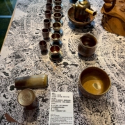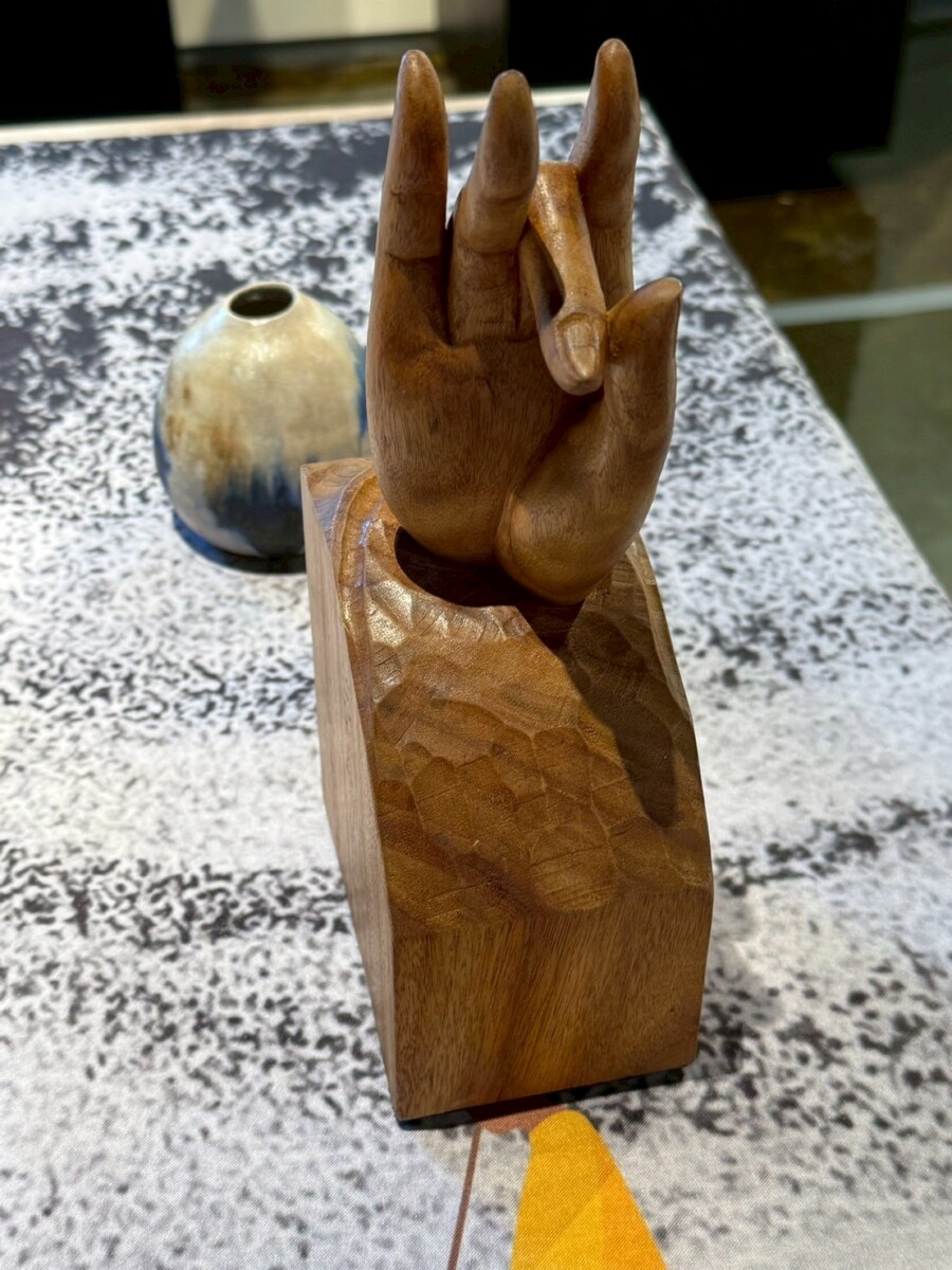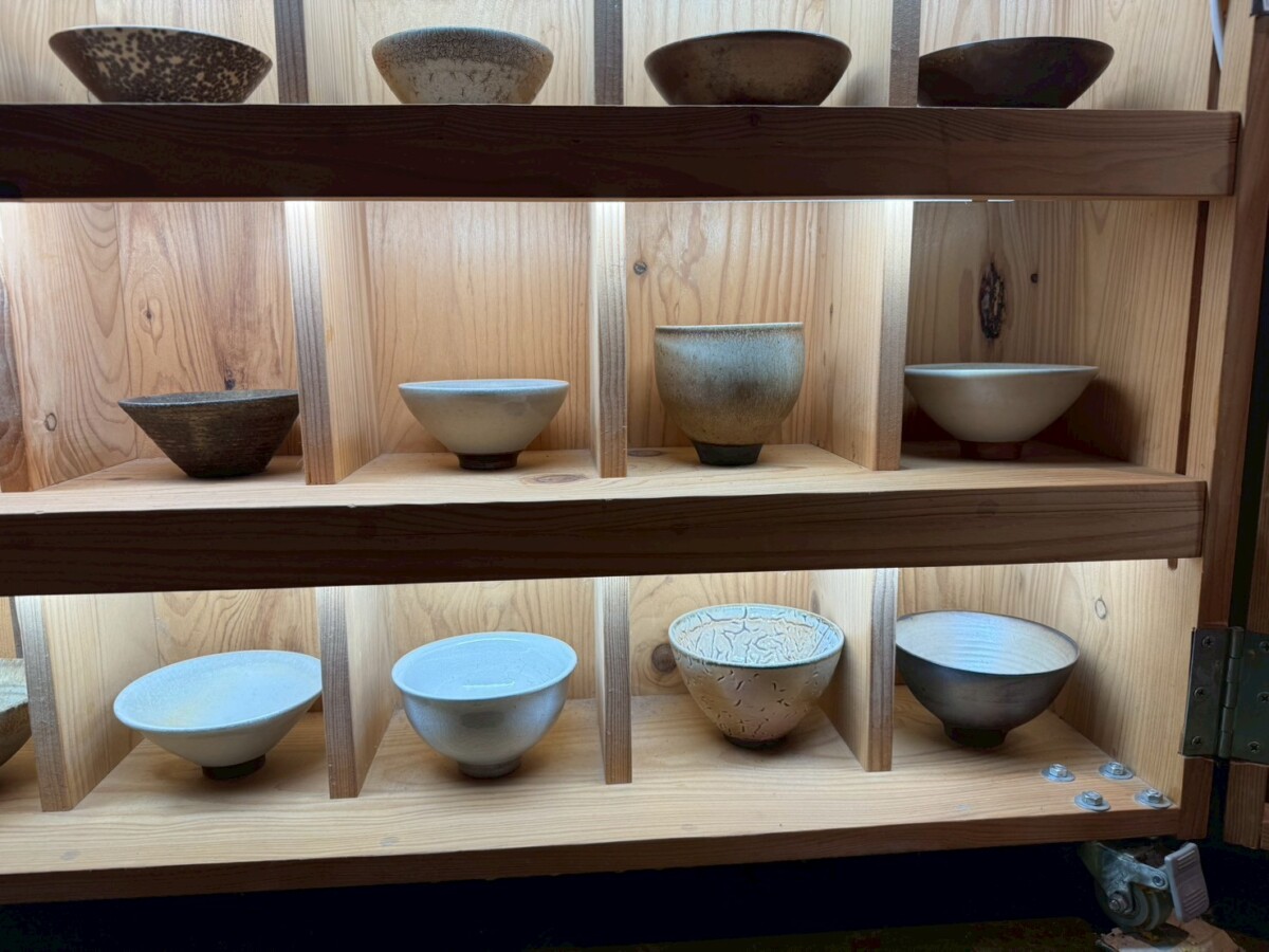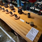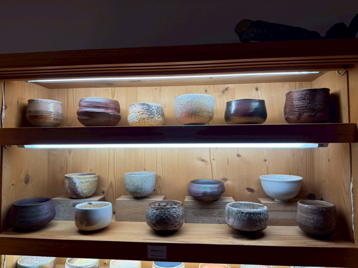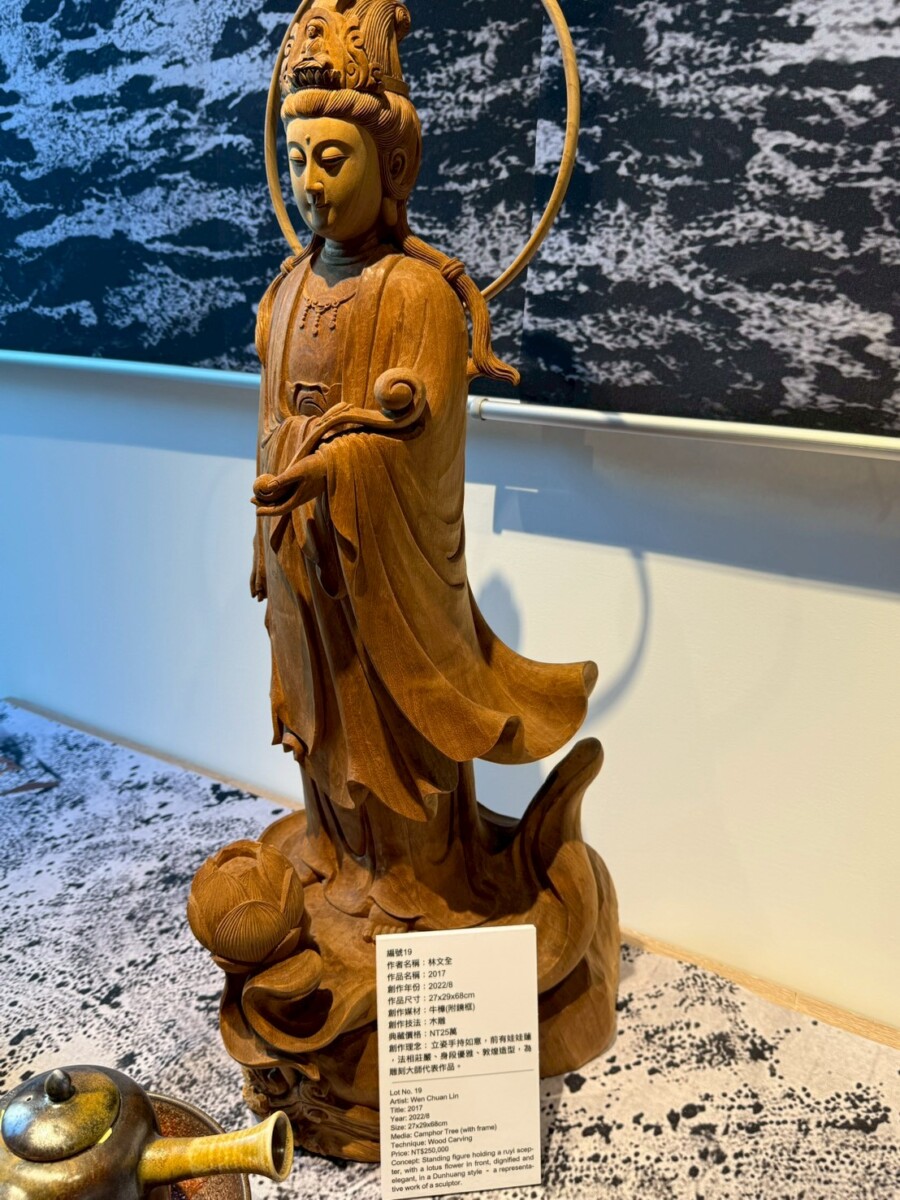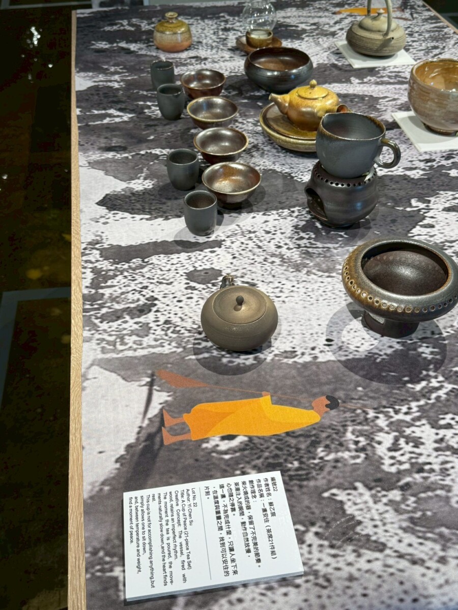 在《一盞一相》的創作對話裡,蘇乙宸的柴燒茶器與佛像木雕形成了靜與動、內觀與外觀的交織。佛像引導觀者停下腳步凝視內心,而茶器則透過鋪陳生活的節奏邀請觀者參與。在這一看一喝之間,觀者得以在茶香與木香中重返與自身的對話,感受時間、火候與願力如何在無聲中流動,進而找回在現代快節奏生活中迷失的自我。