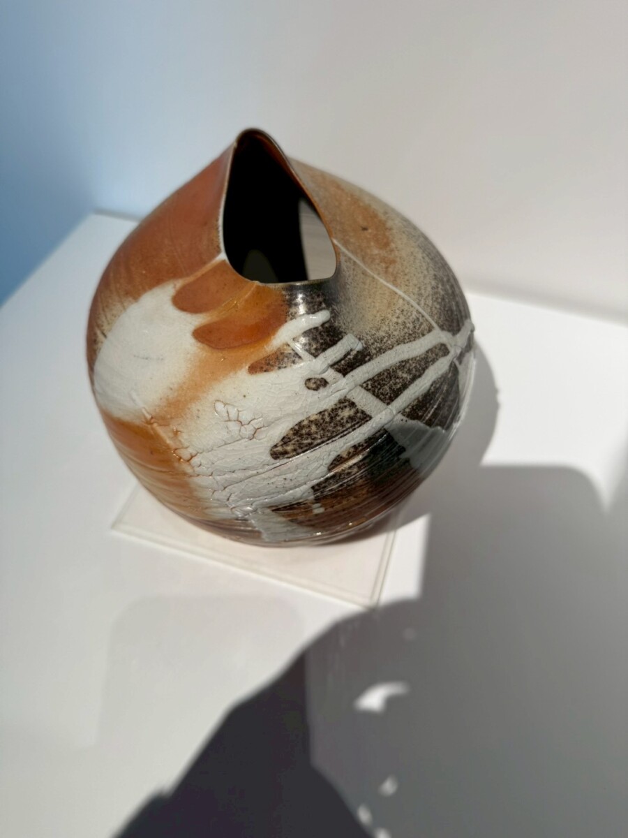 這件名為《2456U》的作品,是新加坡陶藝大師陳德興於2018年在台中天目城舉辦的「天地人高峰匯」台星國際藝術交流展中,極具代表性的展出創作。陳德興與泥土結緣二十餘載,作品廣受世界各地博物館及私人收藏,他在這件作品中充分展現了深厚的工藝底蘊與對生命如戲般的驚喜體悟。