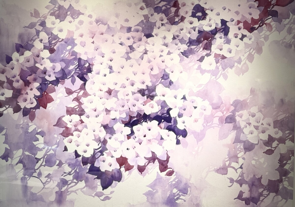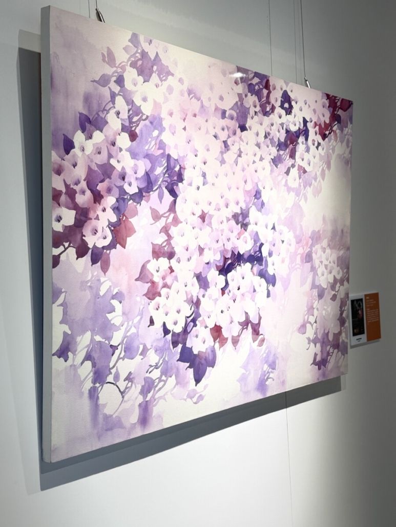 藝術家運用紫色、洋紅、淡粉與白色的細膩層次,讓濃與淡、亮與柔在畫面中交織,形成一場色彩的交響。