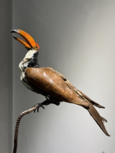王偉權先生運用獨特的眼光,將經歷時間洗禮的漂流木,像拼圖般細膩地組合在一起,賦予它們全新的生命形態。您所見的每一塊木頭、每一條紋理,都訴說著它們在河流與海洋中的漂泊故事,如今聚合一體,構建出這隻雄奇而生動的巨嘴鳥身軀。