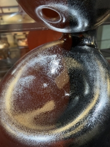 羅紹綺老師正是以這份內斂的平靜與精湛的工藝,將天然植物灰與土石泥漿調製出的釉藥,在高溫下催化出這片既如塵世凡俗又如超脫宇宙的釉面。